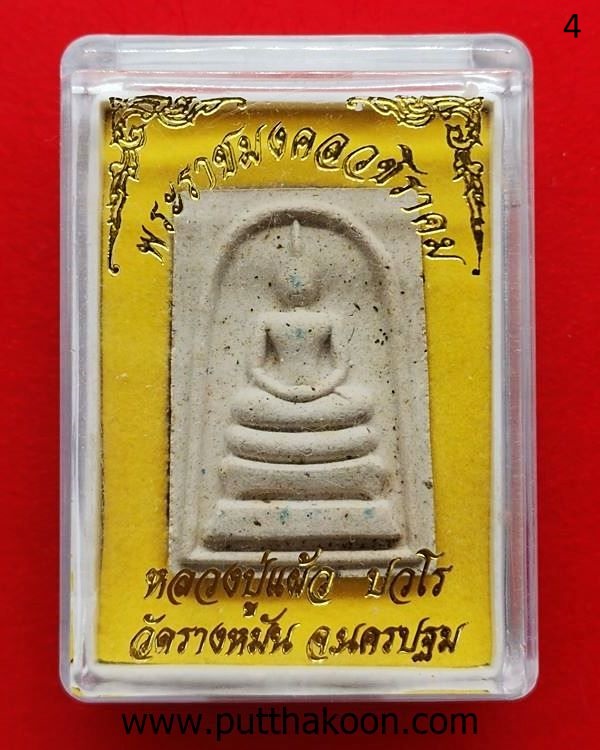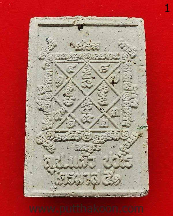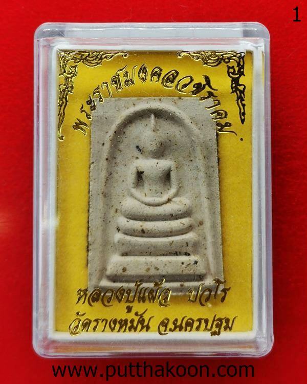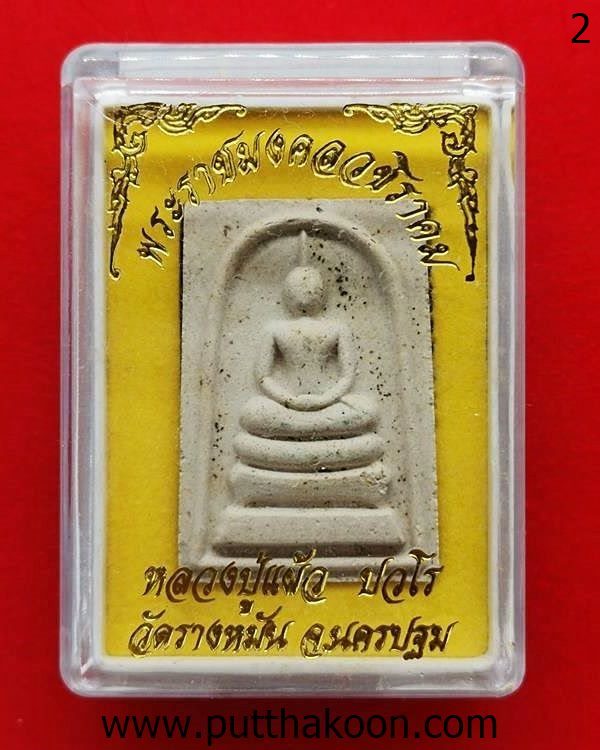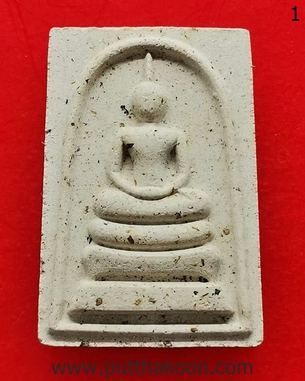 พระสมเด็จไตรมาส 51 เนื้อผงผสมเส้นเกศาหลวงปู่แผ้ว ปวโร มีเส้นเกศาทุกองค์ ปลุกเสกที่วัดกำแพงแสน และนำไปออกที่วัดรางหมันตอนหลวงปู่ย้ายไปจำพรรษาวัดรางหมัน พระเก็บเก่ามีขี้มดเกาะตามผิวพระ สวยเดิม มีกล่องแทน … 400 บาท (องค์ 1)