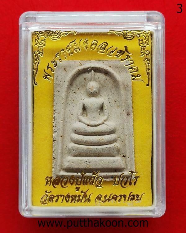 พระสมเด็จไตรมาส 51 เนื้อผงผสมเส้นเกศาหลวงปู่แผ้ว ปวโร มีเส้นเกศาทุกองค์ ปลุกเสกที่วัดกำแพงแสน และนำไปออกที่วัดรางหมันตอนหลวงปู่ย้ายไปจำพรรษาวัดรางหมัน พระเก็บเก่ามีขี้มดเกาะตามผิวพระ สวยเดิม มีกล่องแทน … 400 บาท (องค์ 3)