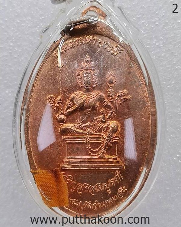 องค์ที่ 2 เหรียญเมตตามหาบารมี (เหรียญหลังพรหม) วัดกำแพงแสน พ.ศ. 2550 เนื้อทองแดง ตอกโค๊ด ผ.ปวโร กำกับ เลี่ยมพร้อมจีวร มีกล่องแทน … 600 บาท