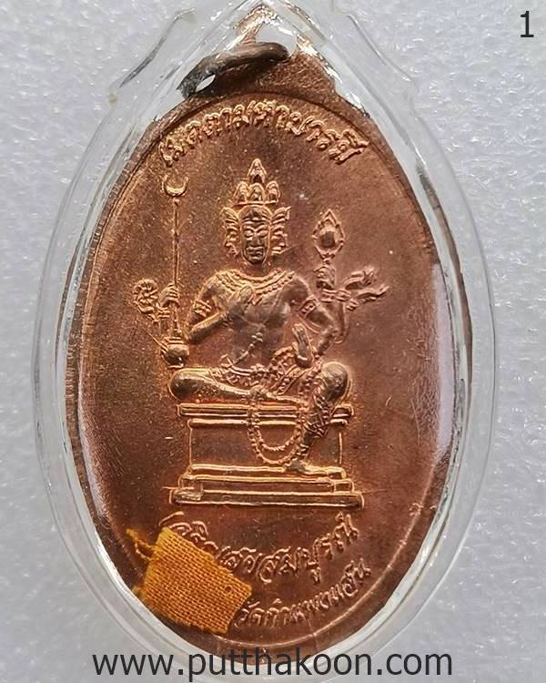 องค์ที่ 1 เหรียญเมตตามหาบารมี (เหรียญหลังพรหม) วัดกำแพงแสน พ.ศ. 2550 เนื้อทองแดง ตอกโค๊ด ผ.ปวโร กำกับ เลี่ยมพร้อมจีวร มีกล่องแทน … 600 บาท