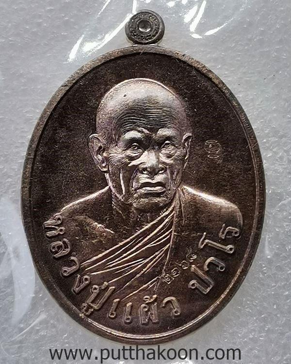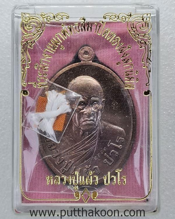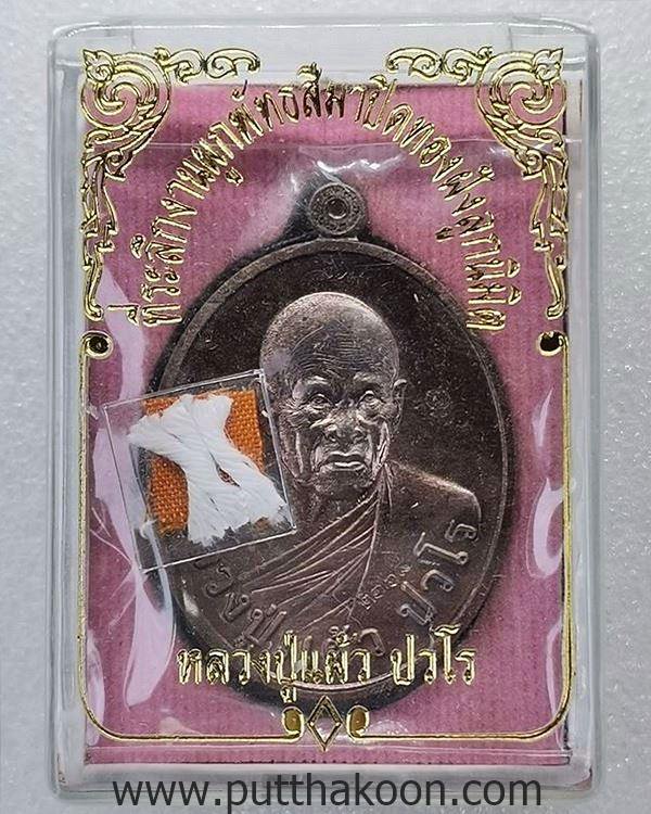 เหรียญผูกพัทธสีมา หลวงปู่แผ้ว ปวโร วัดรางหมัน จ.นครปฐม เนื้อนวะ ตอกโค้ดกำกับ เลข ๒๑๓๒ มีกล่อง มี จีวร,สายสิญจน์ …1,400 บาท