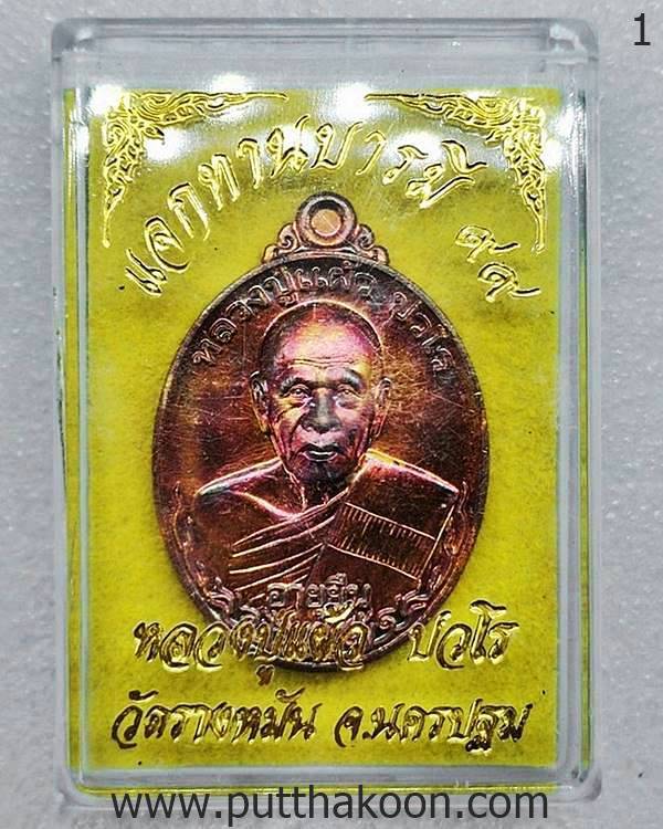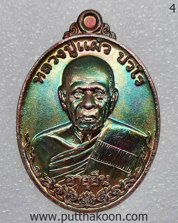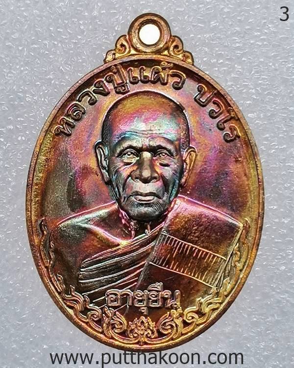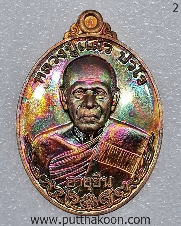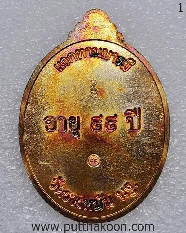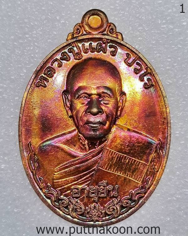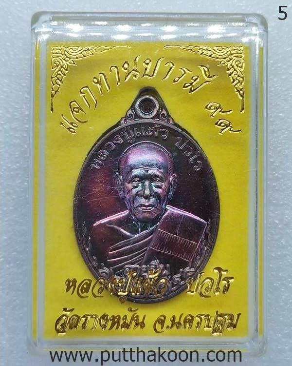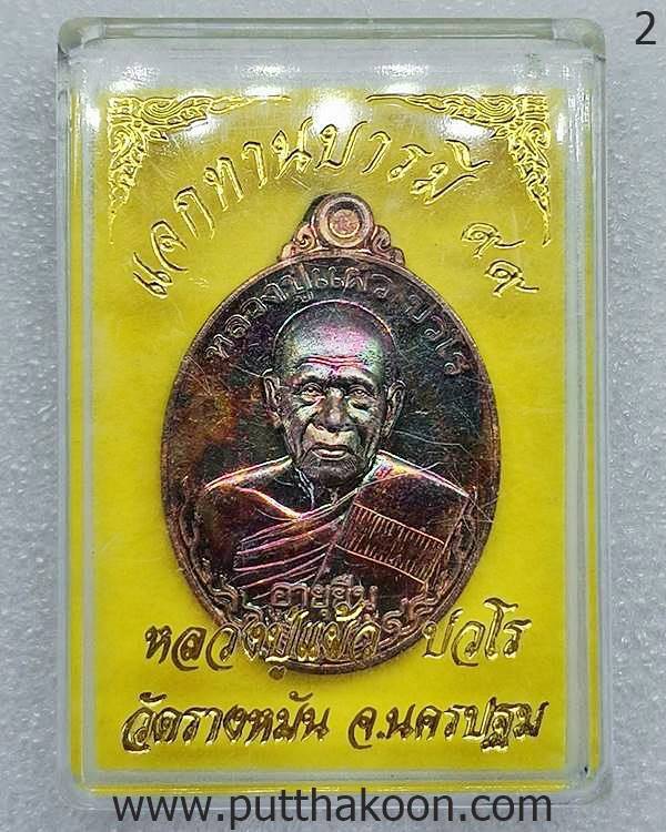 เหรียญแจกทาน บารมี ๙๙ หลวงปู่แผ้ว ปวโร วัดรางหมันเนื้อทองแดงผิวรุ้ง ตอกโค้ดกำกับ มีกล่อง … 650 บาท (เหรียญ 5)