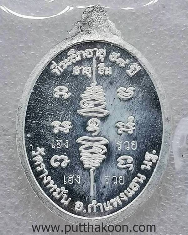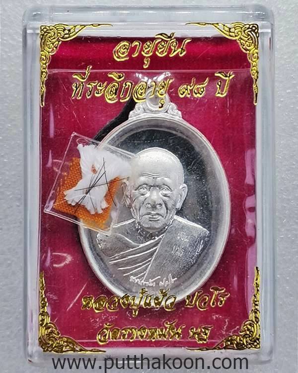หลวงปู่แผ้ว ปวโร .. เหรียญลายเซ็นต์ เฮง เฮง รวย รวย 2 เนื้อเงิน ตอกโค๊ดกำกับ สร้าง 999 เหรียญ พร้อมกล่อง มี เกศา,จีวร,สายสิญจน์ … 4,000 บาท
