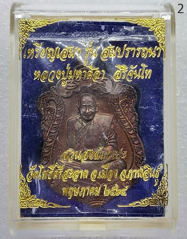 เสมาสมปรารถนา ปี 64 หลวงปู่มหาศิลา สิริจันโท สวนสงฆ์แกเปะ วัดโพธิ์ศรีสะอาด จ.กาฬสินธุ์ เนื้อทองแดงรุ้งเจ้าน้ำเงิน ตอกโค้ดแจกทาน สร้าง 5,000 เหรียญ มีกล่อง … 1,750 บาท (เหรียญ 2)